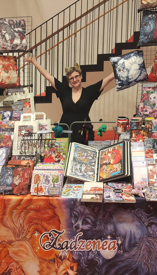 Anja Hartmann veröffentlicht seit 2003 ihre Bilder unter dem Künstlernamen "Zadzenea" und ist dabei vor allem für ihre Buntstiftcolorationen bekannt geworden. Bei ihr findet ihr handgezeichnete Fantasy und märchenhaft angehauchte Motive. Von niedlich bis zu einem mystisch-düsteren Touch ist bei ihrer detailreichen Buntstiftkunst für jeden Geschmack etwas dabei.
