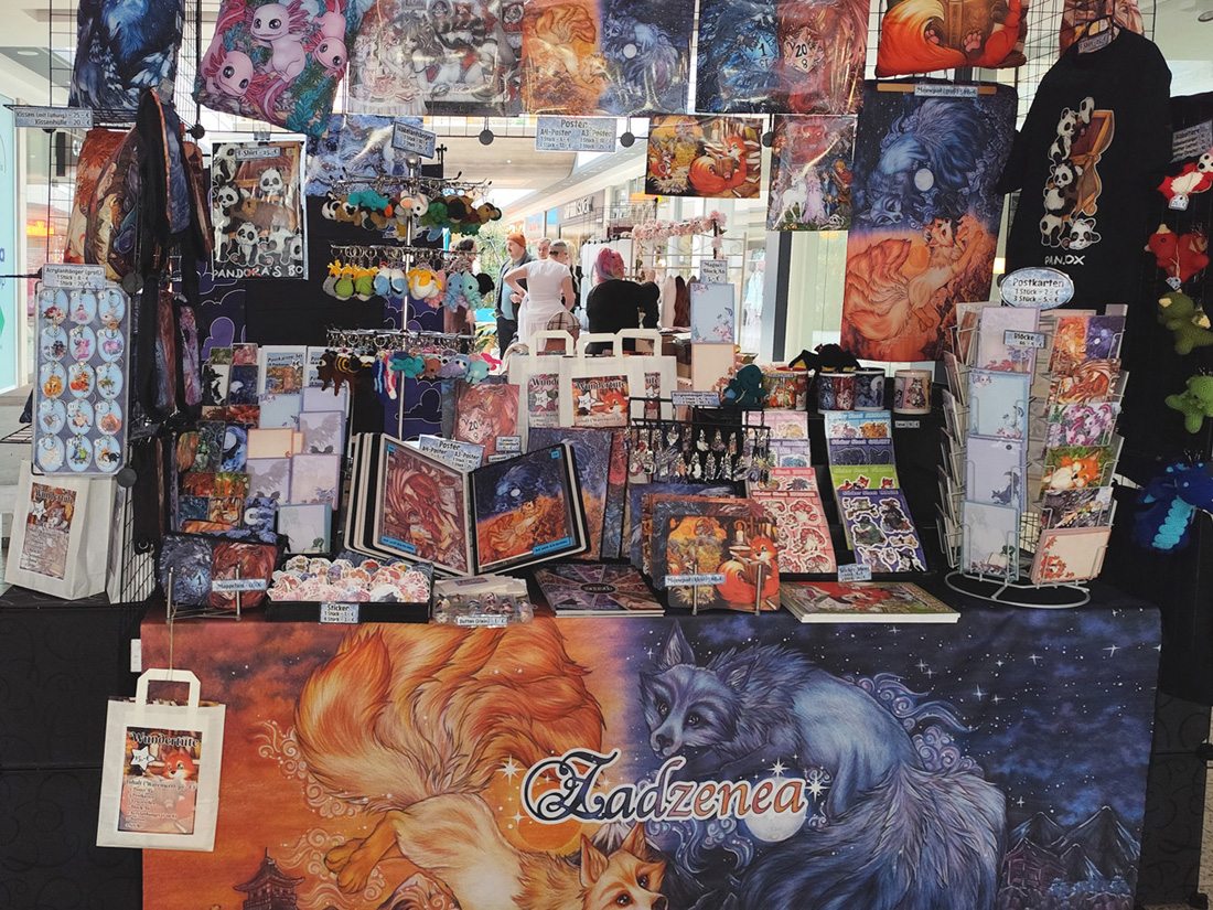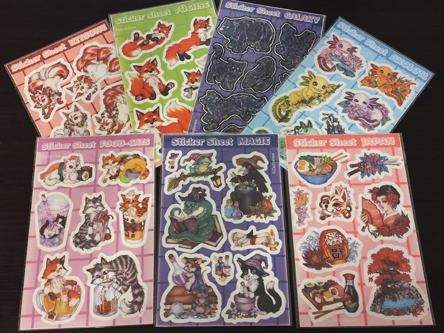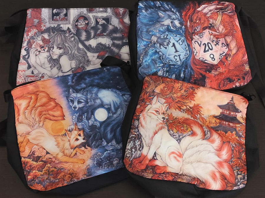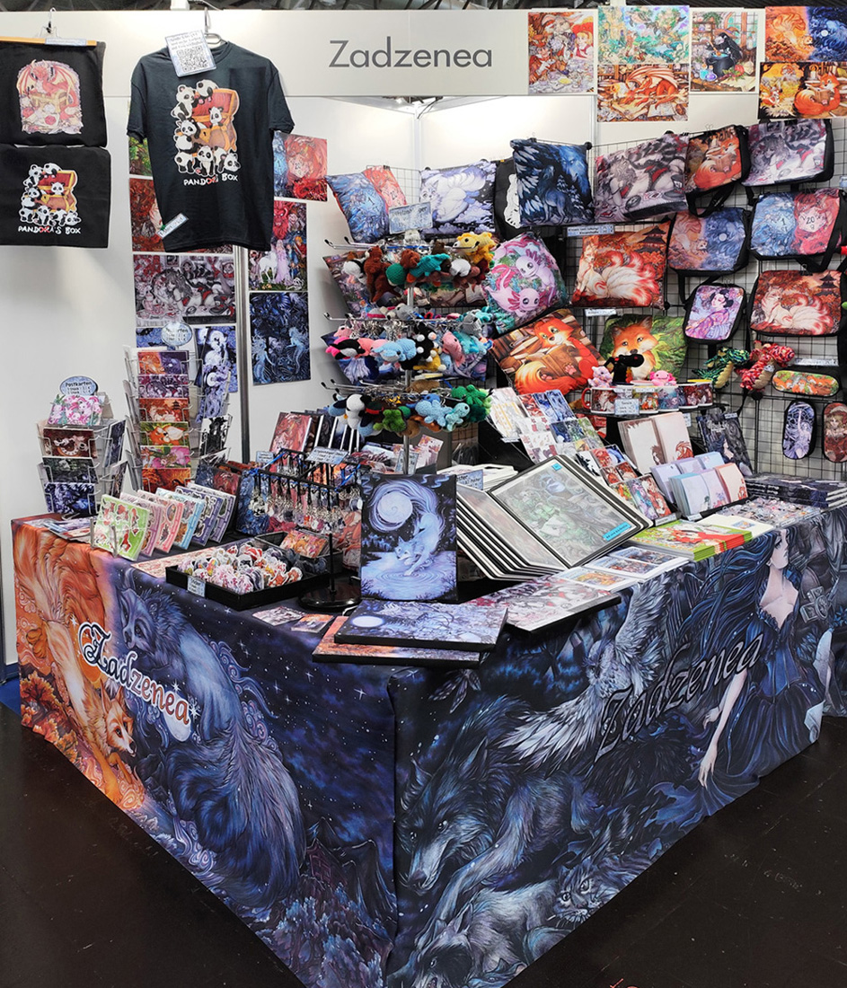 Neben diversem Merchandize zu ihren Bildern, z.B. Postern, Lesezeichen, Anhängern, Conhonbücher bishin zu Kissen, Taschen und Federmappen, bietet sie auch handgehäkelte Amigurumi-Tierchen an und zeichnet auf den Conventions auch live auf Wunsch.